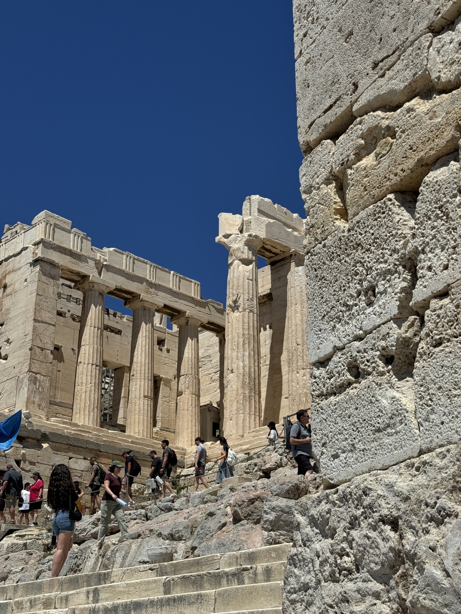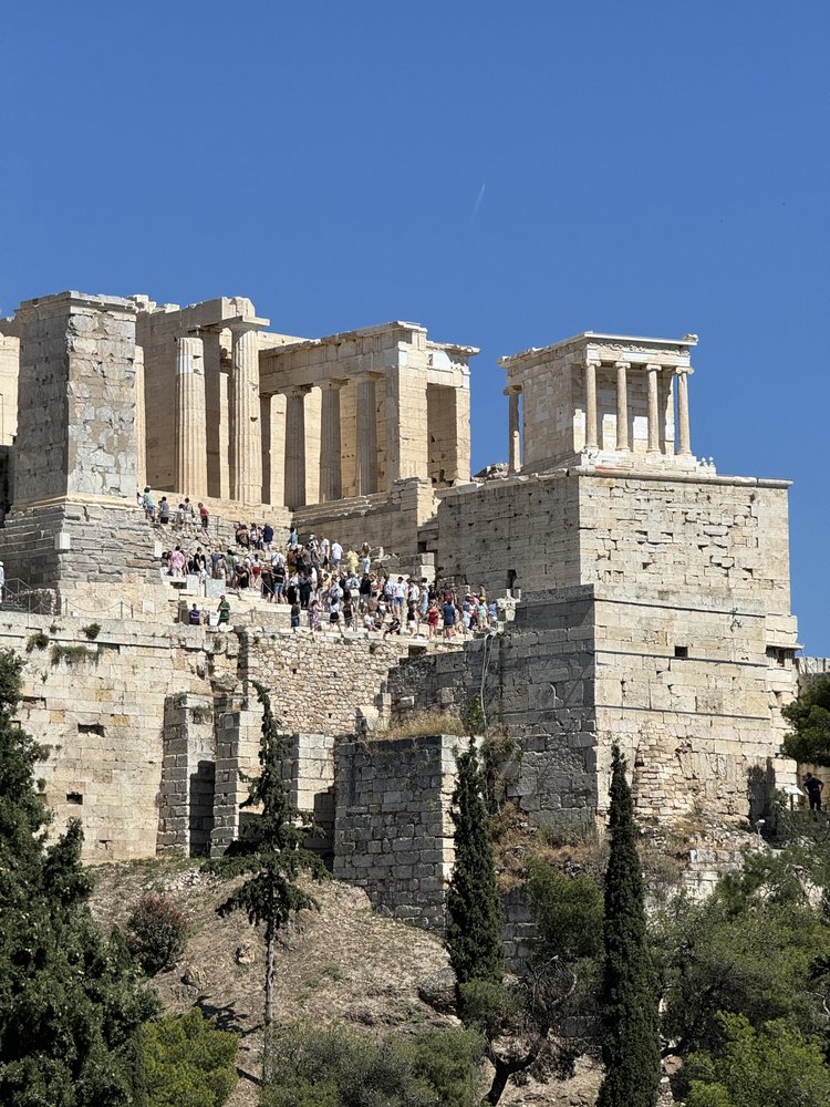 Seven hours into my blindness, we arrived in Athens and our exceptional tour guide, Ron Singer (who was also our guide when we went to Israel last year), and Alex each took an arm and guided me to a local pharmacy where I was given steroid eye drops. The drops worked seemingly instantaneously – my eyes opened, and while ultra-sensitive to light, I could see! It came just as we arrived at the Acropolis and Parthenon!! Alex, who is a physician, assured me that the medication in the drops should not work at the speed in which I had regained my sight. We weren’t sure what to make of this, but were astounded, even confounded, as I rebounded 😉