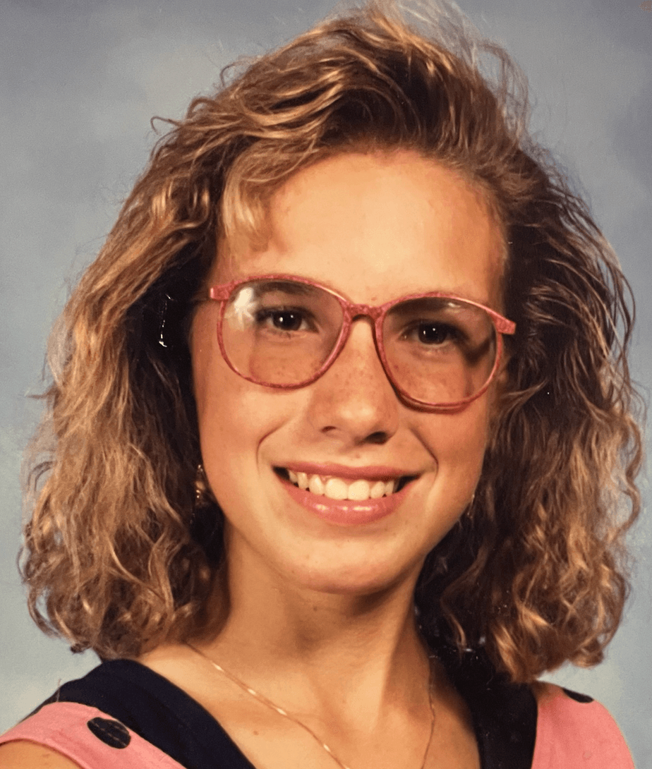 In the 6th grade, I sat in the front row of Mrs. Collins’ class and could no longer read the blackboard. It was the 80s and pink tortoise-shell glasses seemed like the right choice 😂 🤓 These glasses lasted until freshman year in high school, when I opted for contact lenses.